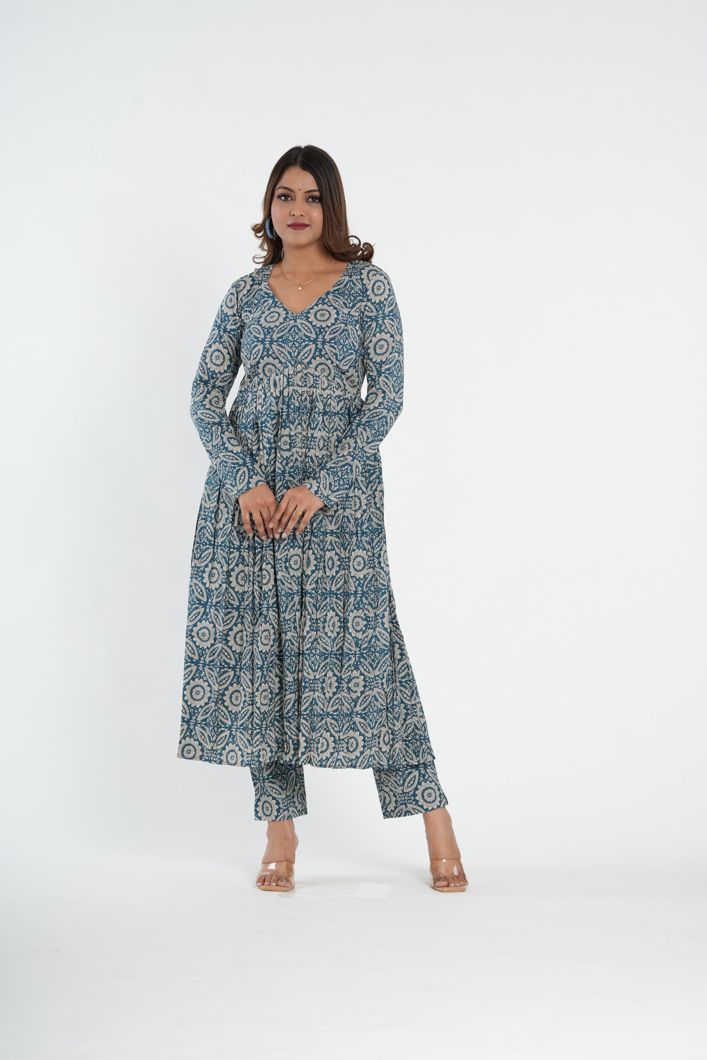 This floral printed cotton naira kurta &pant is perfect for day outing. It has intricate attractive vibes.